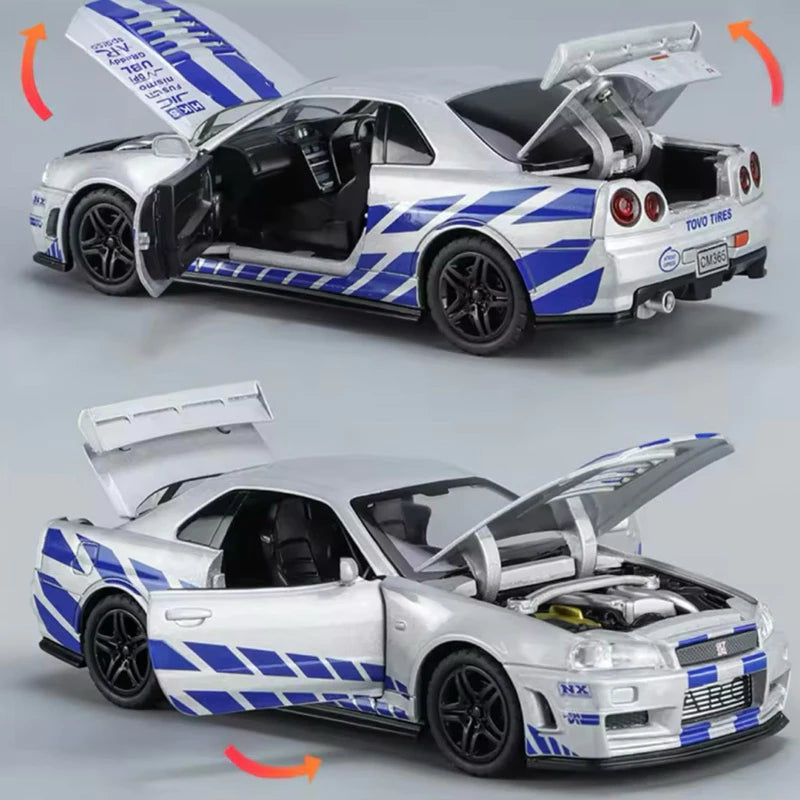 KLT 1:32 Nissan GTR R34 com Som e Luz, Portas Abríveis, Liga - AMZ