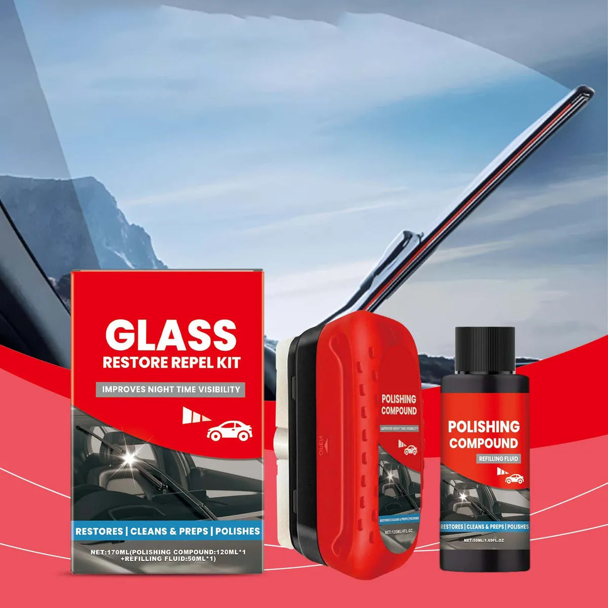 📌 Modo de uso simples: Limpe o vidro, aplique o produto uniformemente com o aplicador incluso, enxágue com água limpa e pronto. Quando acabar, basta recarregar com fluido de reposição.